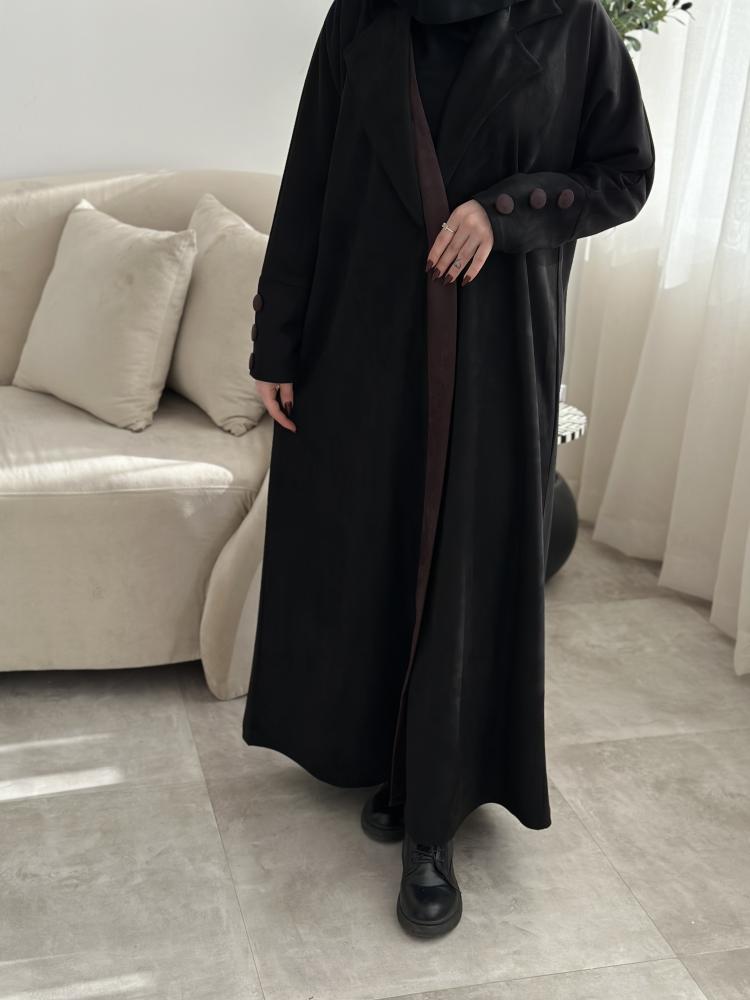 • أُختيرت العباية بأجود الأقمشة الشتوية الفاخرة وبتصميم أنيق للشتاء